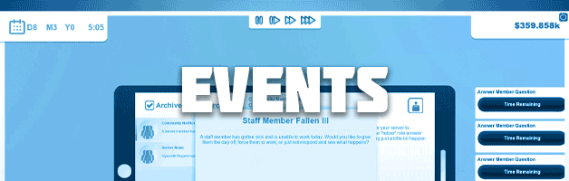 Don’t get too comfortable; smooth sailing is not guaranteed when you’re in the game server business. From viruses to staff disputes, random events will require you to remain vigilant and ready to respond. As these events arise on your journey, you must carefully choose how to counter - the consequences may be bigger than you can imagine!