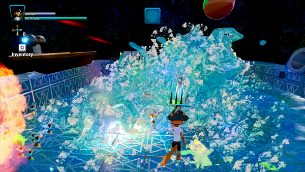 Explore the island, collect treasure, buy and unlock powerful items each with different unique effects such as damage, healing and freezing, combine and strategize the effects of your items to use them to destroy enemies as quick as possible, dodge attacks from turrets all over the island such as rockets and lasers, infiltrate a highly secured facility with different types of dangers and puzzles, drive a boat armored with a cannon to aim and shoot the pirate battleship until it goes down.
