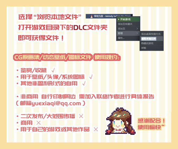 本DLC收录了《黎明为歌》的全部CG(共16张) 尺寸为2560*1440,可作为壁纸使用~ 感谢大家的支持和喜爱!
