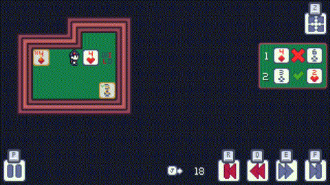 Pokaban is a puzzle game where you push cards around to make poker hands. There are marked positions that correlate to a poker hand on the screen. Once enough cards are added to a hand it will be compared with the dealer's hand. If all of your hands beat the dealer then you win the match!