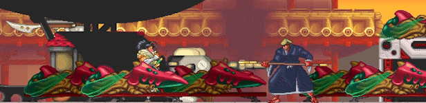 Ganryu 2 is a 2D platformer at its best! It is the sequel to the Ganryu game made by VISCO on NEOGEO back in 1999. The universe takes place in a feudal fantasy Japan which is strongly inspired by the story of Takezo Musashi, whose adventures are unfolded in a series of books (mainly "The Stone and the Sword").