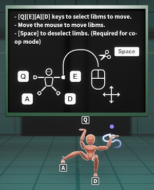 One player controls one limb. Let’s communicate with each other and move the puppet well.