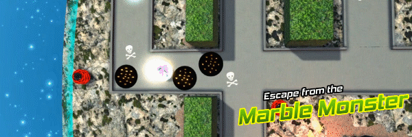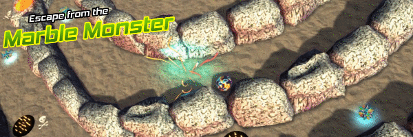 Escape from the Marble Monster, is a unique game of its kind, where your marble depends on the rotation you make to the world using the keyboard, mouse or gamepad to move and avoid dangers. Monsters may die, but your marbles will shatter at your first mistake and if you stand still, you'll feed the monsters!.