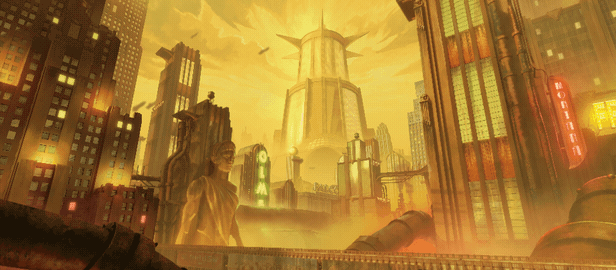 Thirty-five years ago, the dense, bustling metropolis of New Libertis was born from an explosive boom of technological marvels. This new industrial renaissance saw the rapid expansion of the “Iron City”, pioneered by industrialist Hieronymus Frazer, founder of the now-omnipresent FALCORP.