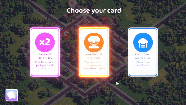 Deliver packages and get upgrades. Each upgrade has its own unique effect and rarity. You can decide whether to use it now or save it for later stages. Upgrades can have a big impact if used wisely