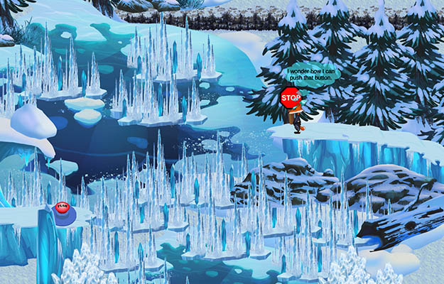 "I'm dying to press that shiny red button!' (quest available with purchase of full game)
