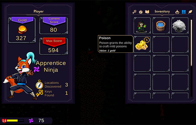 Jaki's Wacky Adventure is a lighthearted, action-packed, cartoony RPG shooterPlay as Jaki, a clever ninja fox, in this diverse 2.5d RPG shooter. As a powerful ninja, wield your shuriken with deadly accuracy against bugs, beasts and robots as you dodge enemy fire and avoid dangerous hazards. Your path is perilous as you chase an escaped killer all the way to Chillgrave Keep. Beat your best score and become the best ninja in the land.
