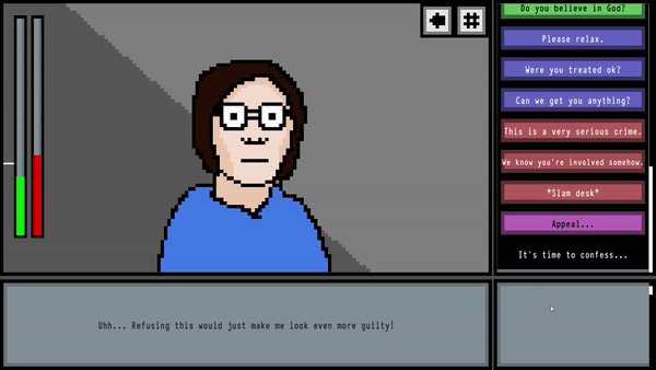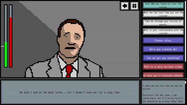 Ask the right questions in the right order to get a confession from your Suspect.
