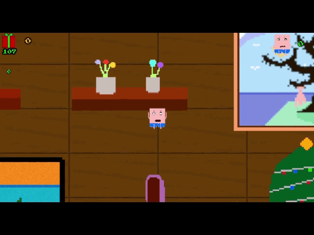 very elusive Santa Hanz, jump on his head and make presents pop out of his bag! Smash as many presents as you can within a certain time limit.