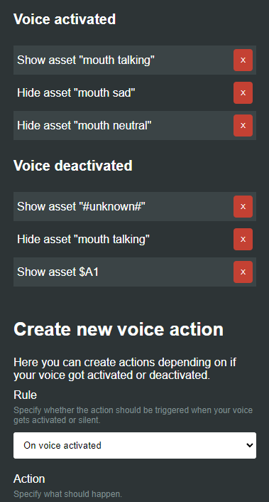 - Create voice activation and deactivation actions to control your assets based on when you are talking