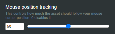 - Mouse position tracking so that you can slowly move your assets based on your mouse position to make your assets more immersive