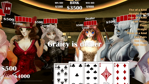 Furry Sex: Poker is a dating-sim-styled game where you have to beat your opponents in poker. Watch both your cards and your opponents carefully in order to determine which move should you do next. Your best bet would be on concentrating on one enemy per game. Once you beat one, there is an animated Live 2D sex scene in the Galley waiting for you. Beat all of your opponents in poker to open all the animated scenes from the galley and be the best poker player at the table! Features: - a variety of different card set-ups - six sexy and skillful opponents - animated Live 2D sex scenes