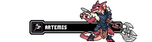 Artemis is a renowned general in the Fire Mora who often fought alongside Zetterburn. She was sent to Julesvale by Emperor Loxodont on a secret mission. Artemis can heal her wounds in battle, showing off her innate regeneration abilities.