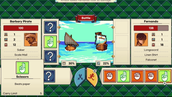 Fight against pirates, thieves, wild animals and mythic creatures with a unique "rock-paper-scissors" style turn-based combat system.