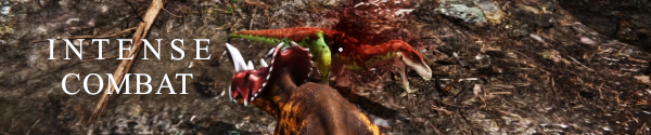 The combat of Dinosaurs Dominion is heavily influenced and inspired by souls like games which allows players to lock on to their enemies and strike or dodge incoming attacks.