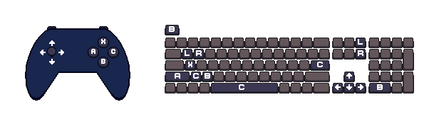 Assignments can be changed in the Game Properties dialogue box, which is displayed by pressing the F1 key while the game is running. Below are the default settings*, and the correspondence between buttons and game commands.