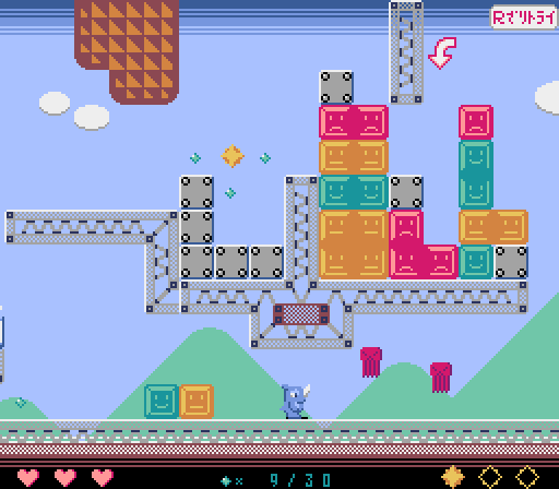 ● Blocks that disappear when the same color is aligned.Blocks have the property of disappearing when three of the same color are aligned, and a chain like a puzzle game may occur.
