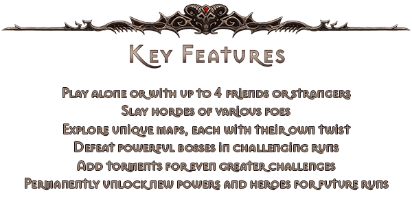 Select torments, additional challenges, to make your runs harder and more interesting, granting you additional rewards when completing a run!