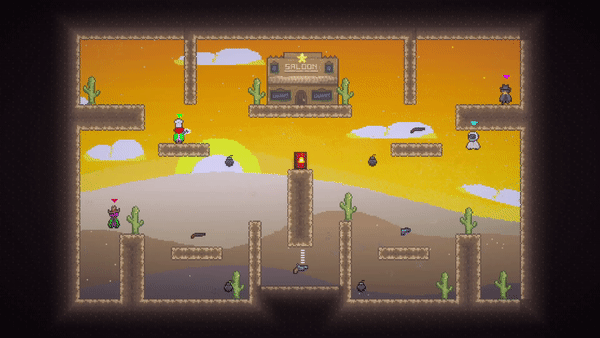 In Grapple Gunners, you fight your friends to be the last one standing. Every round begins with everyone scrambling to get a weapon and starting to fight. Every player starts with a grappling hook to make their way around the map. The rounds are short but action-packed! Tons of weapons such as the Grenade Launcher, Laser Pistol and Minigun ensure that every round will end with chaos! • Play online or locally with 2-4 players • Fight across 30 different maps • Customize your character to look however you please • Game settings to customize your matches