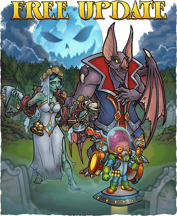 A sinister moon rises over Senenthia and our heroes dress up for the occasion. With this DLC, you will get 7 new Halloween themed skins and 1 exclusive cardback for your heroes.