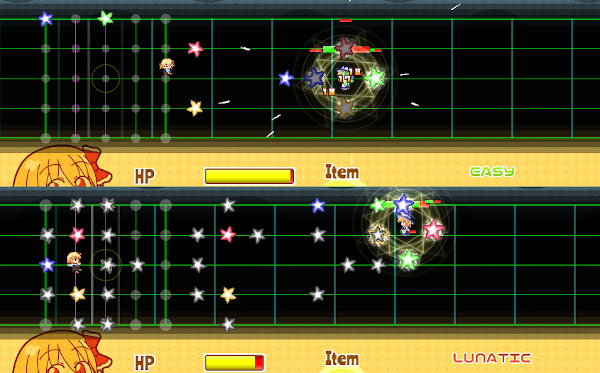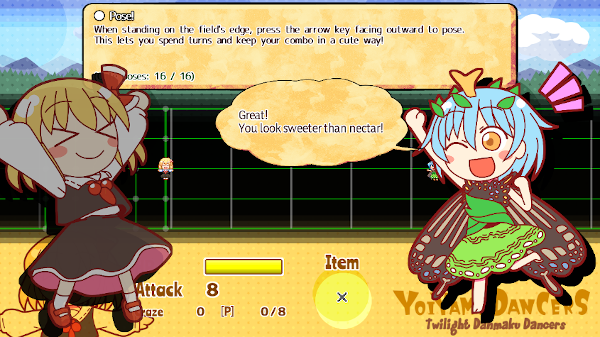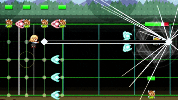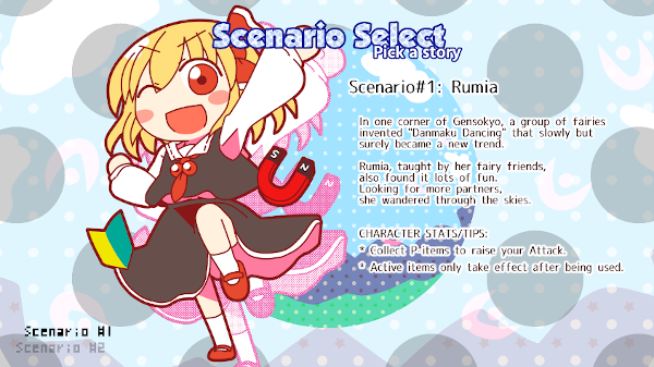 A tale of Danmaku Dancing with two protagonists!The game features two protagonists:
