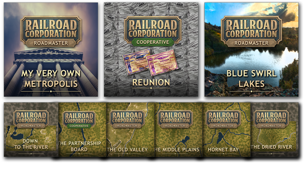 Reunion - a cooperative scenario. A story driven cooperative scenario were it is necessary to connect two railroad networks that are located pretty far away from each other. It is necessary to make sure both partners are making enough money to expand their railroad networks and accomplishing the mutual goal.
