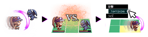 敵に接触したり、攻撃を仕掛ける(仕掛けられる)と、周囲を巻き込んでシームレスにターン戦闘に移行します。