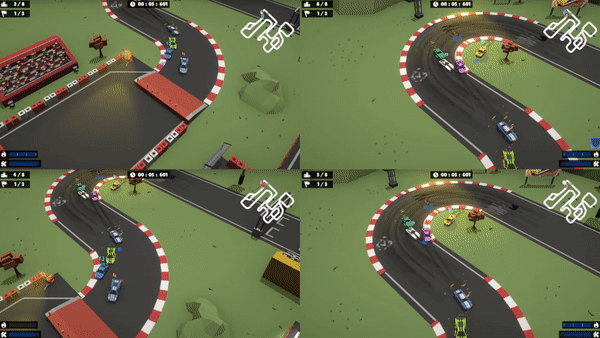 Race against your friends in a couch co-op session via split screen, whether it is just for a few races or the full Grand Prix experience. Rear end your friends and watch them explode, while you are cruising towards the finish line.