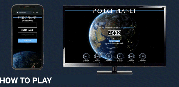 Project Planet can be played alone, but it's even more fun with friends! It turns your browser into a controller, either on your PC or mobile phone. So whether at home on a couch or online through a stream, you can invite up to five friends to join in for FREE. No app or extra controllers needed! Only one copy is needed for your entire party.
