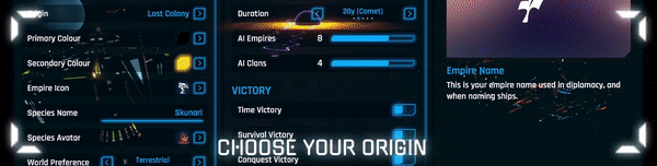 Customize your empire from world preferences, eight different ideologies with their own bonuses, hundreds of empire icons and more. Customize a unique galaxy based on your preferences. There are five different galaxy sizes to choose from.