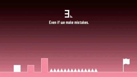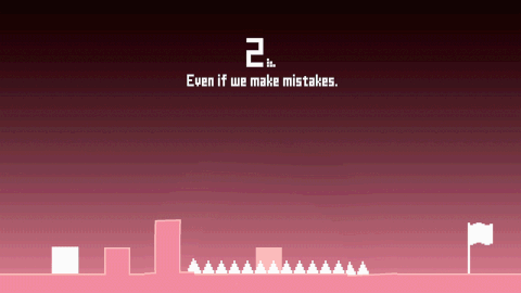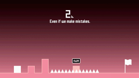 Controlling a simple square in several puzzle levels, Hope is able to deliver multiple emotions to whoever is playing it, through motivational phrases, gameplay and fluid mechanics, sound effects, music and challenges. The character's main mechanic is something very simple, yet profound and unique, which boils down to just three steps.