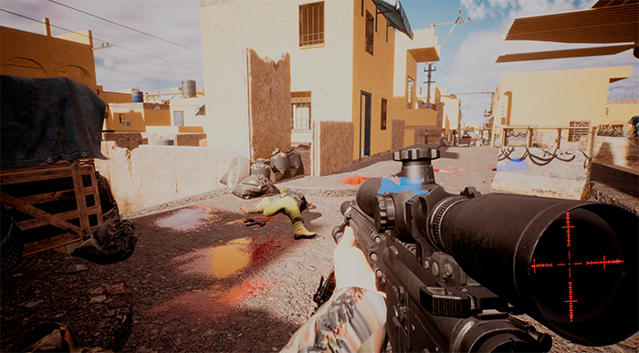 Hit your enemies with your weapons, and blood splashes will spawn on the floor and walls! The blood splash generates from the angle you are shooting them. Try it out and make some blood!