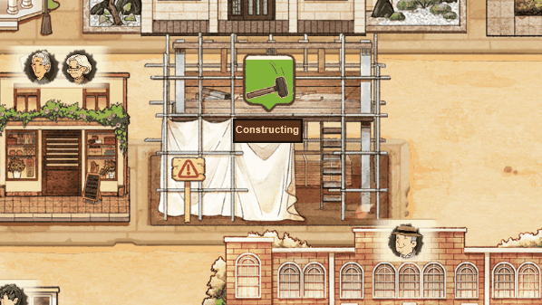 Carefully stylized characters and scenes, predominantly in warm tones, create a beautiful and cozy town for seniors.