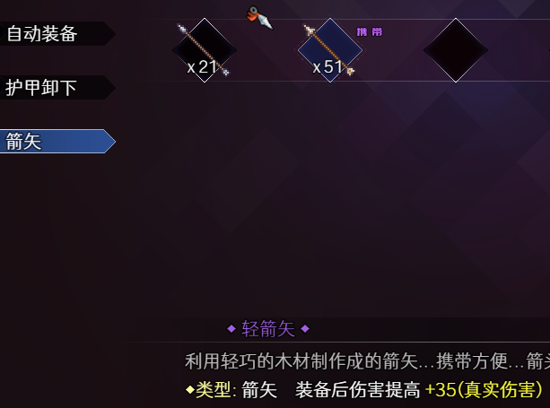 Added bow and arrow system, different bows and arrows have different attributes and starting methods, can be dropped by monsters or crafted, each long-range attack will consume the number of bows and arrows, the choice of bows and arrows can be selected in the arrow menu.