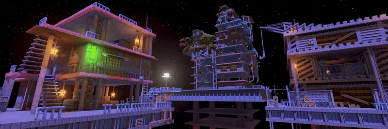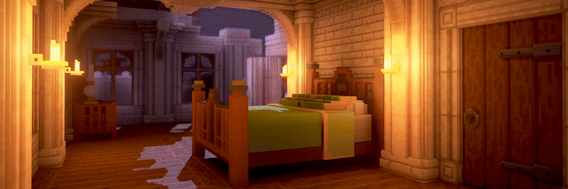Embark on a dangerous journey through meticulously crafted, raytraced voxel landscapes, featuring captivating hand-designed locations at every turn.