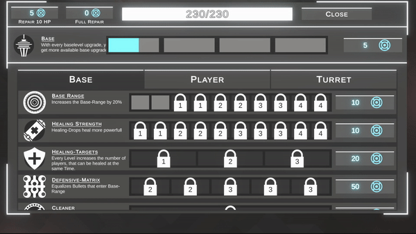 Base Upgrades! Buy Turrets, Increase Stats & Upgrade your Base. Spend the Minerals you mined from Asteroids for powerfull Upgrades to make you survive longer!