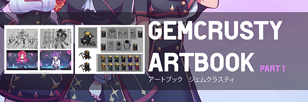 The art asset section includes high-quality images of the Gemcrusty characters and other design elements that can be used for various purposes, such as creating fan art or promotional materials.