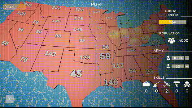 In this strategy game, we will try to make 6 capitalist countries communist by war, that is, by force. Right economy, together with the administration we will control communist rebel armies. We will try to destroy the enemy armies by purchasing poison gas, aircraft, artillery and paratrooper units. When we defeat 1 enemy country, we will try to defeat the next enemy country and make it communist.