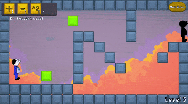 Mr. Mat Hematic is a short, fun, 2D platformer puzzle game where you must use given mathematical operations to alter the environment so you can move around. To complete a level, you need to reach the black door.