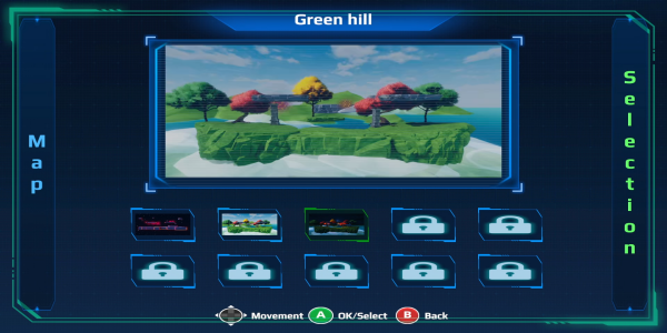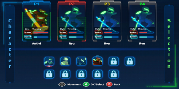 - 4 local multiplayer battle with 4 character only and game mode customization. There are 4 playable characters and 3 map stages.