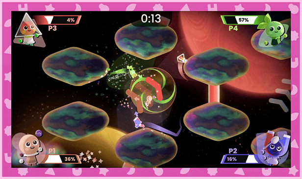 Run, jump and platform away from its relentless suck—but don’t get too close to the opposition. Knock them off with your COMET PUSH ability (before they knock you off, of course) and be the last one standing!