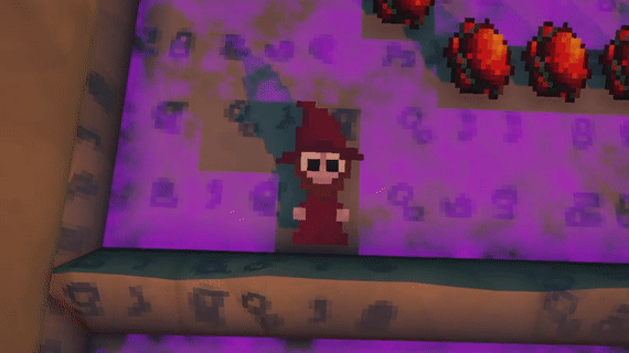 All game entities--including the player--are confined to a grid-based movement system, with wrinkles in the scroll parchment being impassible to all. The scrolls are full of a purple mist that represents the player's ignorance. The mist can hold other entities in place, but the player can remove it simply by walking through it. Once the mist has been removed, any entities it might have been confining can get out, so be careful what you set free!