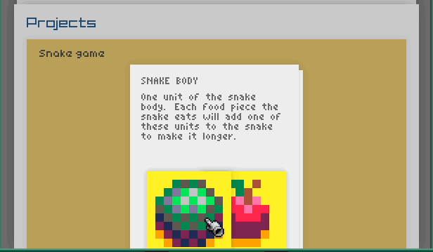 Pixel Art Academy is an educational game for learning how to draw. In Learn Mode, you jump straight into the game's interactive tutorials for the fastest way of becoming a pixel artist. After you learn how to use the basic drawing tools, you put theory into practice by first copying an existing pixel art sprite. When you've shown you got the hang of the tools, you get to create your own art by drawing sprites for a snake game—and then play your creation!