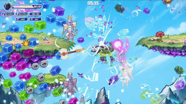 Sky Survivors is an arena shooter roguelite. Choose from a variety of skills, unlock unique characters and weapons. Build «stairway to heaven» — a sky tower, each floor of which gives your character a unique bonus. Create your own overpowered build to survive against hordes of monsters!