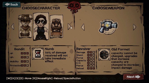 At the beginning of the game, you are given a handful of base characters and their respective weapons, as you complete more missions in the game, more and more characters are available to choose from, and more characters mean more Possibility, many enhancements that you don't use will also get a chance to play. Each character can only use its own weapon at the beginning. For example, a cowboy can only use a revolver. Using this character to complete any task of any difficulty can remove this restriction, and his/her/its weapons can also be used by other characters at will. Try a lot of combinations of different characters and weapons to complete the most difficult tasks. Experiment with various combinations.