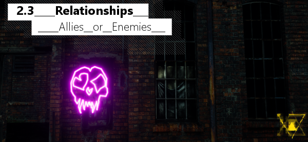 Characters belong to factions and how you behave with them ultimately dictates how the entire faction with treat you.