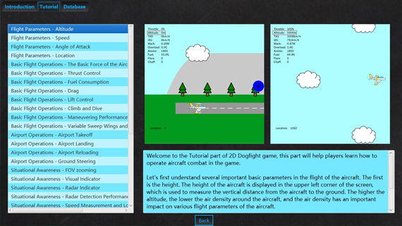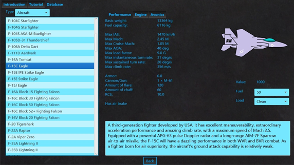 Detailed graphic tutorial and a database of aircraft and missile performance can be consulted to guide players to quickly get started with the game