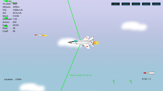 2D Dogfight is a two-dimensional air combat simulation game. This air combat game was independently developed by an aviation and military enthusiast. At first, it was just a simple plane simulator for simulating aircraft acceleration and maneuvering. Expanded to become a complete independent mini-game. Players can drive various jet fighters and attack aircraft from the early days of the Cold War to modern times, and use cannons, rockets, bombs, various types of air-to-air and air-to-ground missiles to complete various types of combat missions. The game style is simple, with basic simulation of the physical and aerodynamic characteristics of aircraft and missiles, allowing players to experience the unique charm of air combat in the two-dimensional world. You can customize combat missions, choose aircraft type and initial state, and freely conduct air combat or ground support. You can also join four different camps including the United States, China, Russia and Europe, and complete a total of 32 alternate historical missions with Cold War and modern backgrounds.