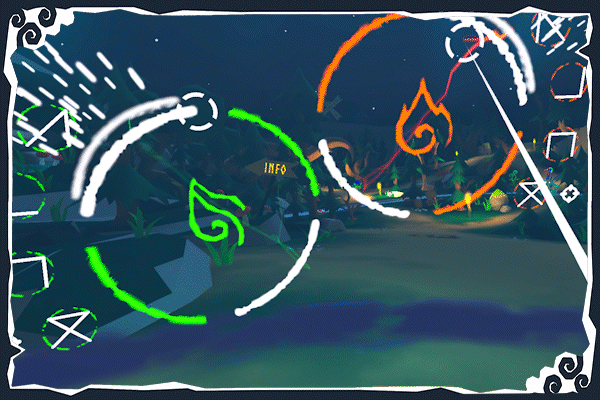 ∠ Draw various runes with an intuitive spellcasting system using the elemental Runepads.