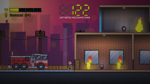 4 playable firefighters with unique abilities. Rescue civilians from burning buildings, natural/artificial disasters.